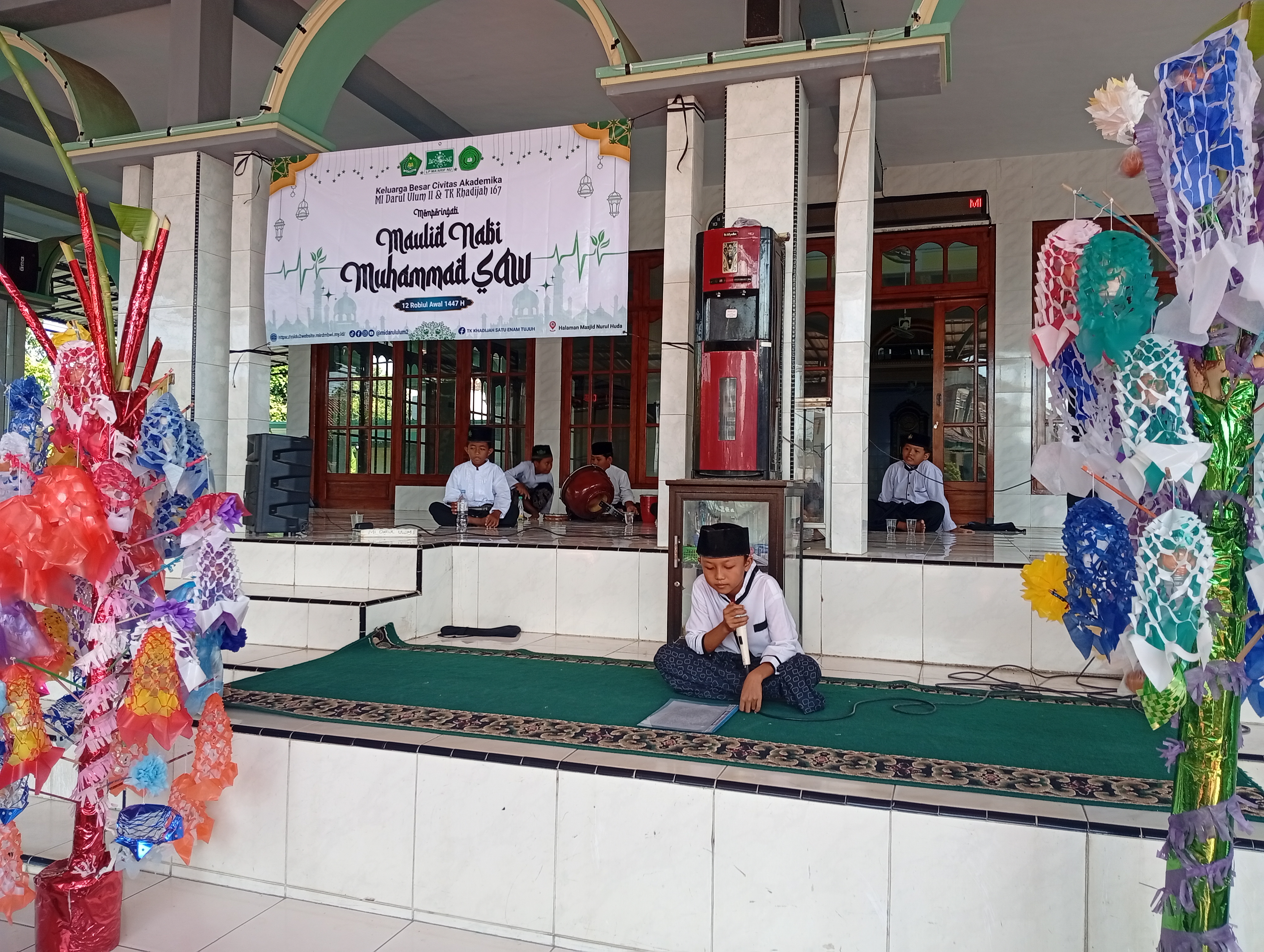 Setibanya di halaman MI Darul Ulum II, rombongan pawai disambut dengan alunan hadrah dari tim Hadrah MI. Irama shalawat yang menggema menambah suasana religius dan khidmat. Para siswa, guru, dan wali murid pun larut dalam kebahagiaan sambil melantunkan shalawat bersama, seakan menggambarkan kecintaan mereka kepada junjungan Nabi Muhammad SAW.