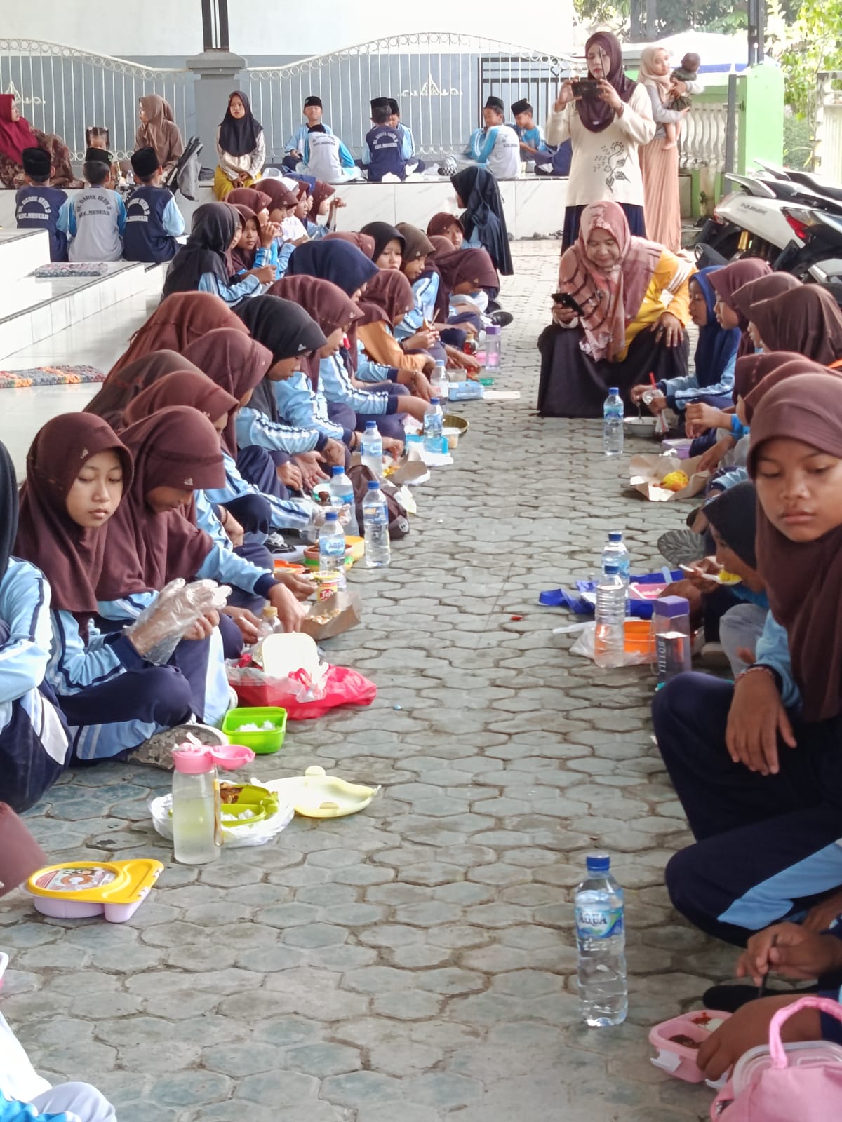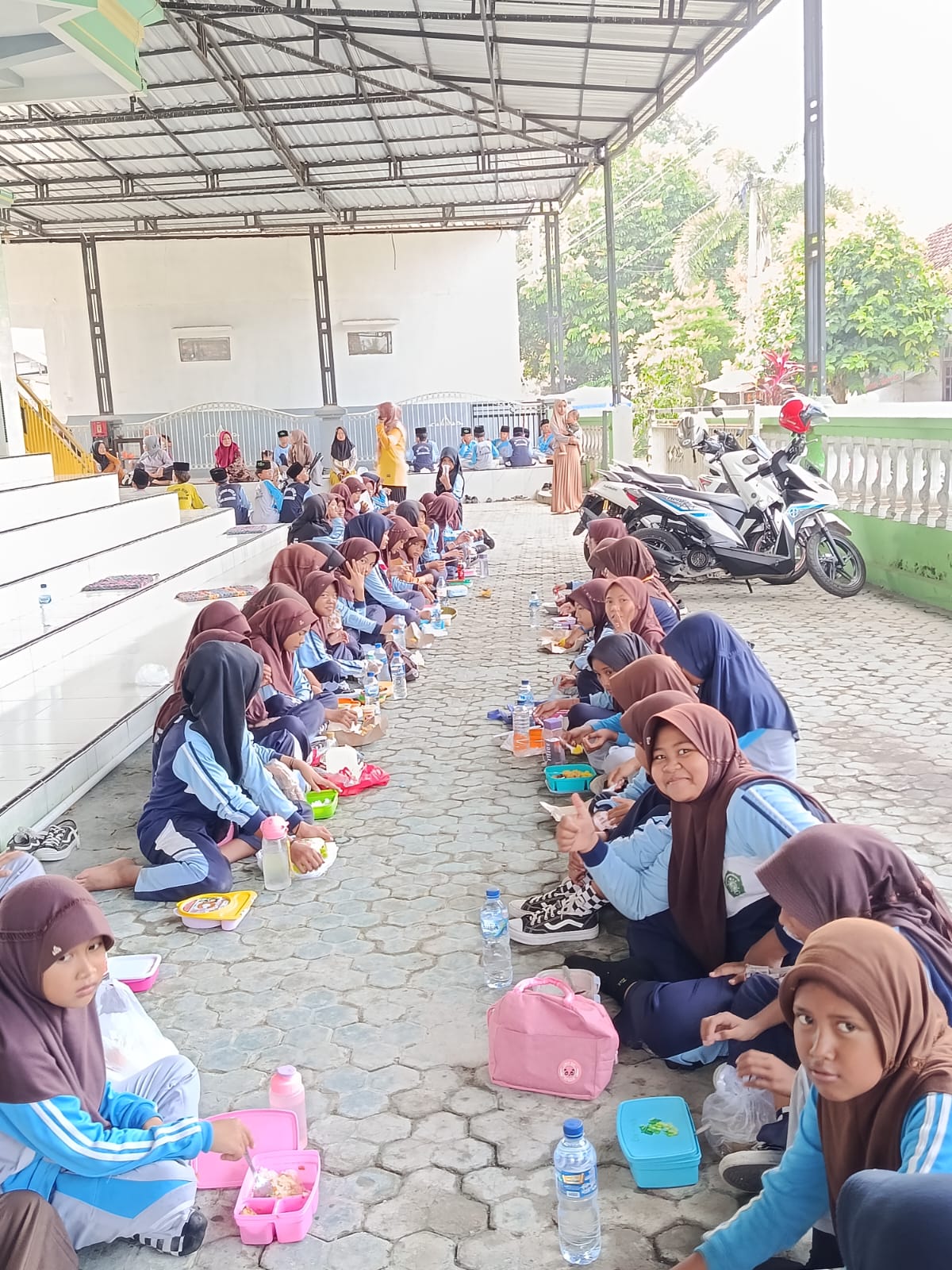 Setelah tubuh terasa segar, acara dilanjutkan dengan sesi makan sehat bersama. Siswa duduk berkelompok sesuai kelas, lalu membuka bekal yang dibawa dari rumah. Bekal sehat yang dianjurkan guru berisi nasi, lauk bergizi, sayuran, buah-buahan, dan air putih. Guru memberi penjelasan singkat mengenai pentingnya gizi seimbang, serta mengingatkan agar siswa mengurangi konsumsi makanan instan atau jajanan kurang sehat. Melalui praktik langsung ini, siswa dapat memahami bahwa makanan bergizi sangat berpengaruh pada pertumbuhan tubuh dan kecerdasan belajar.