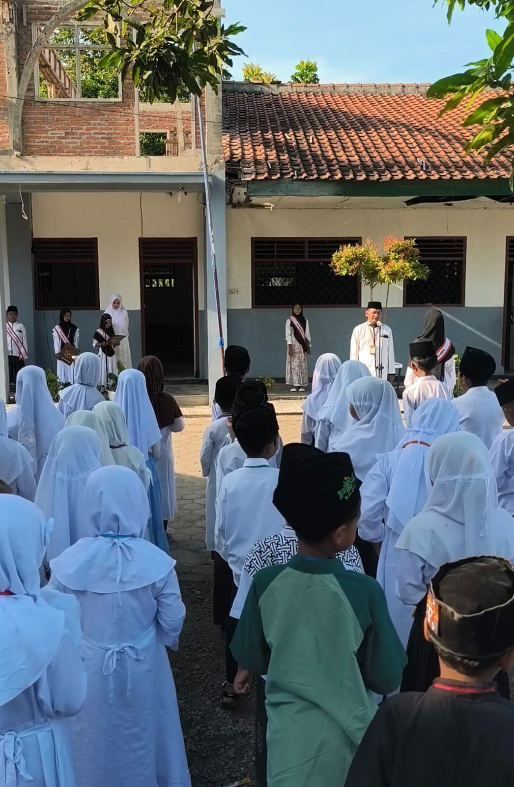 Upacara dimulai pukul 06.30 WIB dan berlangsung dengan tertib. Bertindak sebagai **pembina upacara adalah Kepala Madrasah, Bapak M. Lukman, M.Pd.** Dalam amanatnya, beliau menyampaikan makna mendalam tentang perjuangan santri dari masa ke masa. Menurut beliau, santri bukan hanya identik dengan kehidupan pesantren, tetapi juga merupakan simbol kekuatan moral, spiritual, dan intelektual bangsa. Santri berperan besar dalam mempertahankan kemerdekaan Indonesia dan kini memiliki tanggung jawab besar dalam **mengawal Indonesia menuju peradaban dunia yang maju dan bermartabat.**